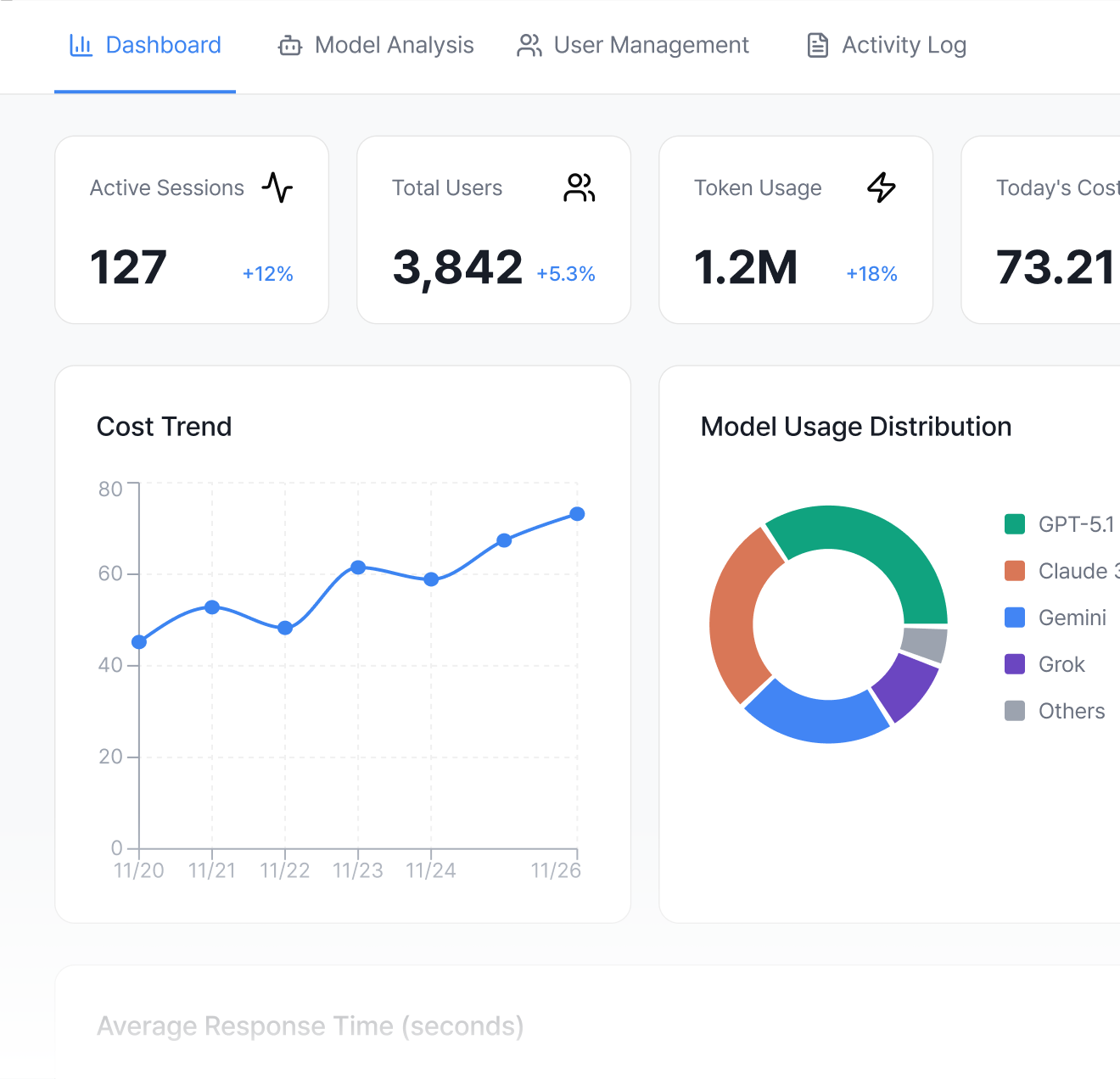Manage and compare leading LLMs in one console—no switching accounts or tabs.