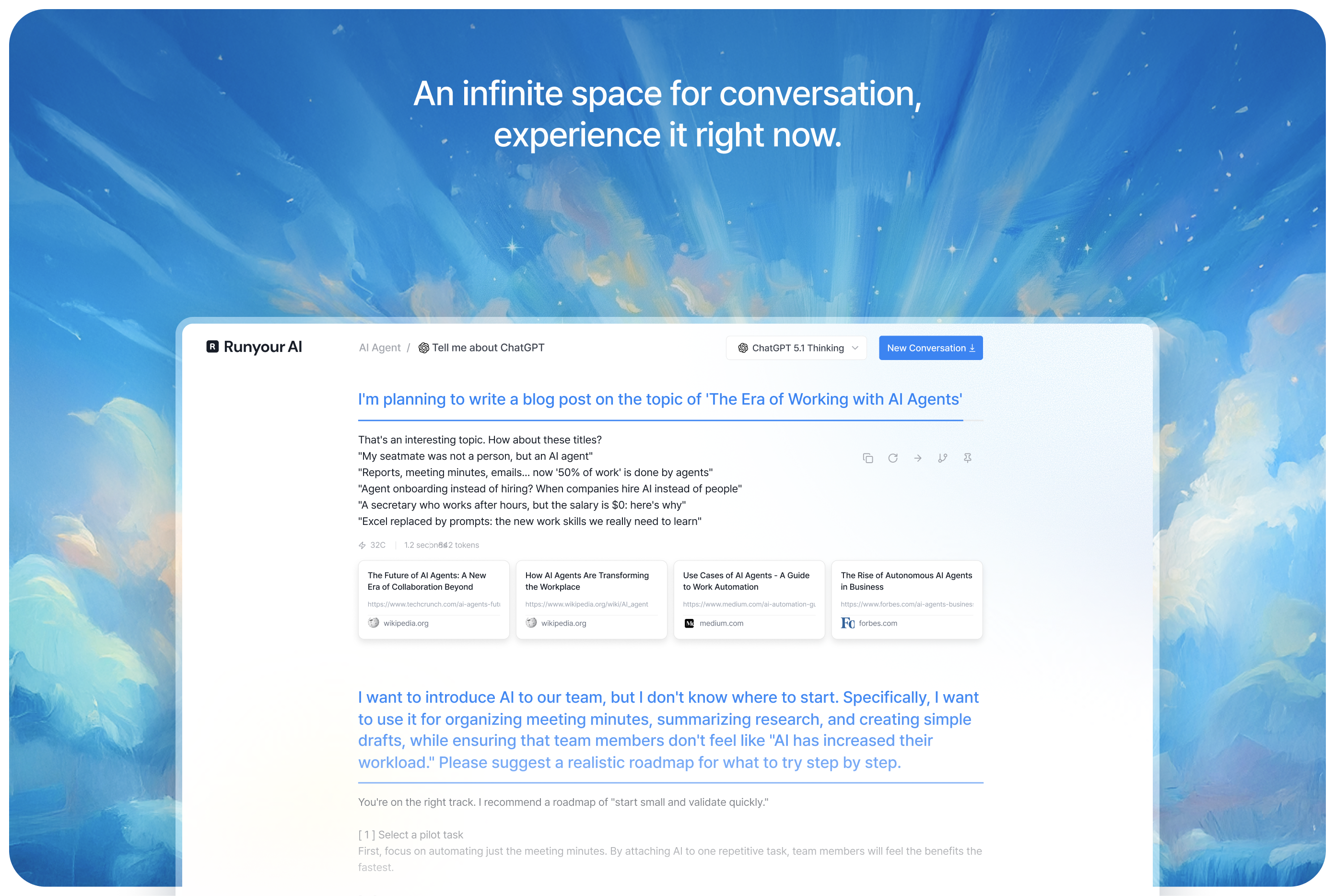 AI Agent lets you choose and chat with multiple LLMs—such as ChatGPT, Claude, and Gemini—from a single interface. You can use all models with one account, without separate logins, payments, or setup for each provider.